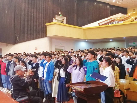 典礼最后一项,进行了重温入党誓词活动。在我院18级历史二班张永祥同志的主持下,全体预备党员庄重宣誓。整齐而有力的宣誓声响彻俱乐部,整个仪式庄严而肃穆。会后,我院预备党员陈丹妮同志说到: “在重温誓词时,我脑海中浮现了抗美援朝纪录片的片段,这让我更加深刻理解到入党誓词的分量与责任。我也深知自己做得远远不够,我也将在今后的生活中更加严格要求自己,不断进步!”