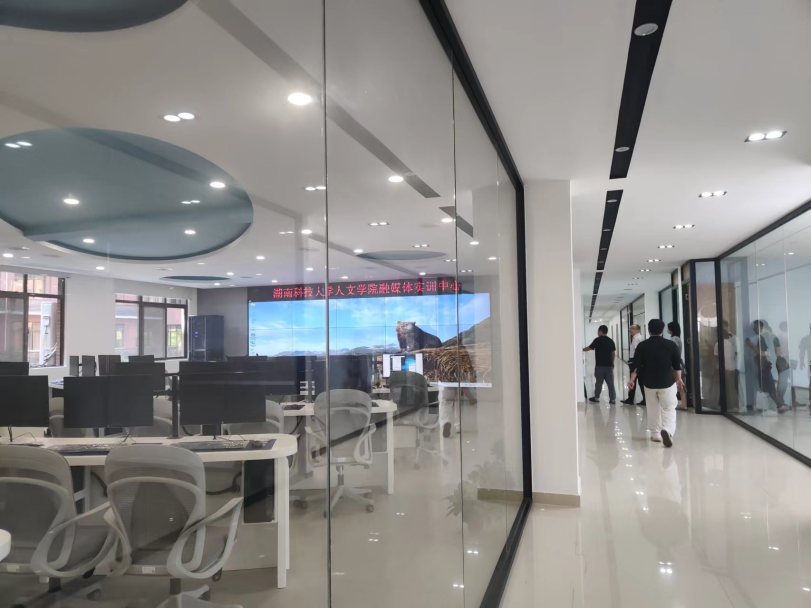 洽谈会最后,我校老师带领中国邮政湘潭分公司人员对我校融媒体中心进行了参观。他们依次参观了全媒体演播厅、直播室等各个功能区,了解先进设备和运作流程。