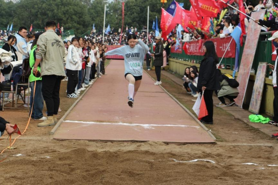 “希望能在运动中锻炼自己,挑战自己。”这是23级历史七班的刘姿同学参加跳远比赛的初衷。她认为跳远是一项富有挑战的运动,在挑战中自我成长,不忘初心是她的目标。成绩不是衡量价值的唯一标准,奋斗和坚持都是胜利的奖章。虽然没有取得令自己满意的成绩,但她仍保持乐观自信,投入到运动会热情的氛围中去。
