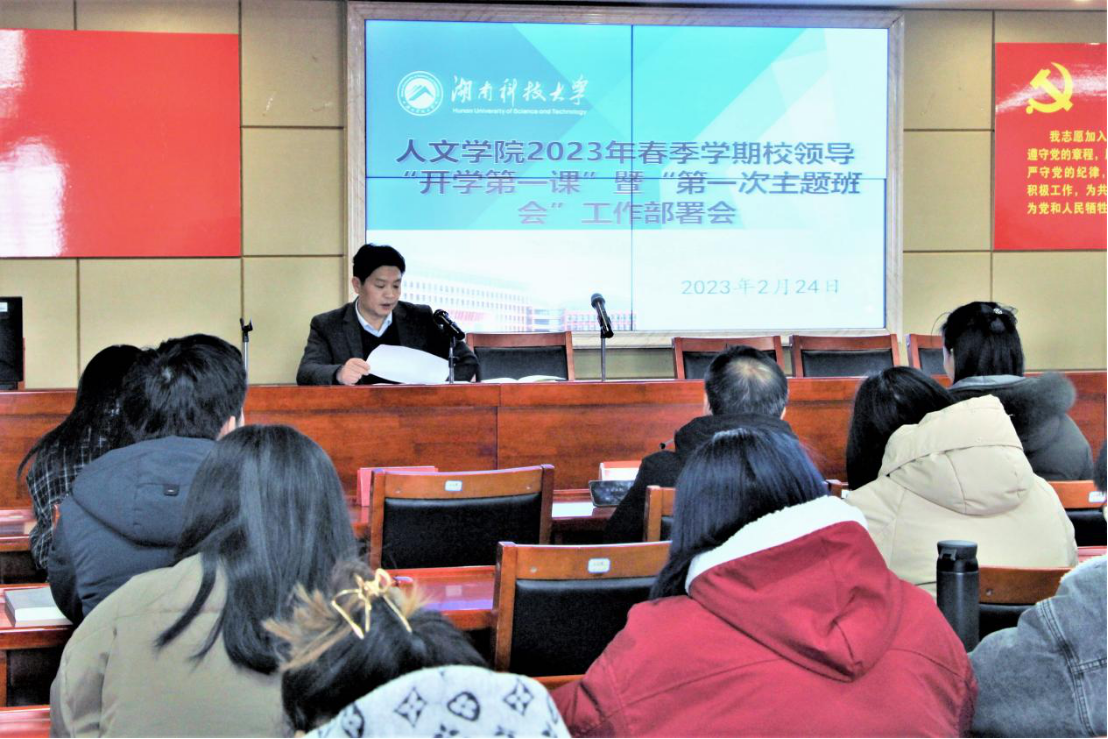 2月24日中午,我院于立言楼B4-1室召开“开学第一课”暨“第一次主题班会”工作部署会,会议由党委副书记罗振军主持。学工部主任李涛、全体辅导员、各班班长、团支书及主席团成员到场参加。